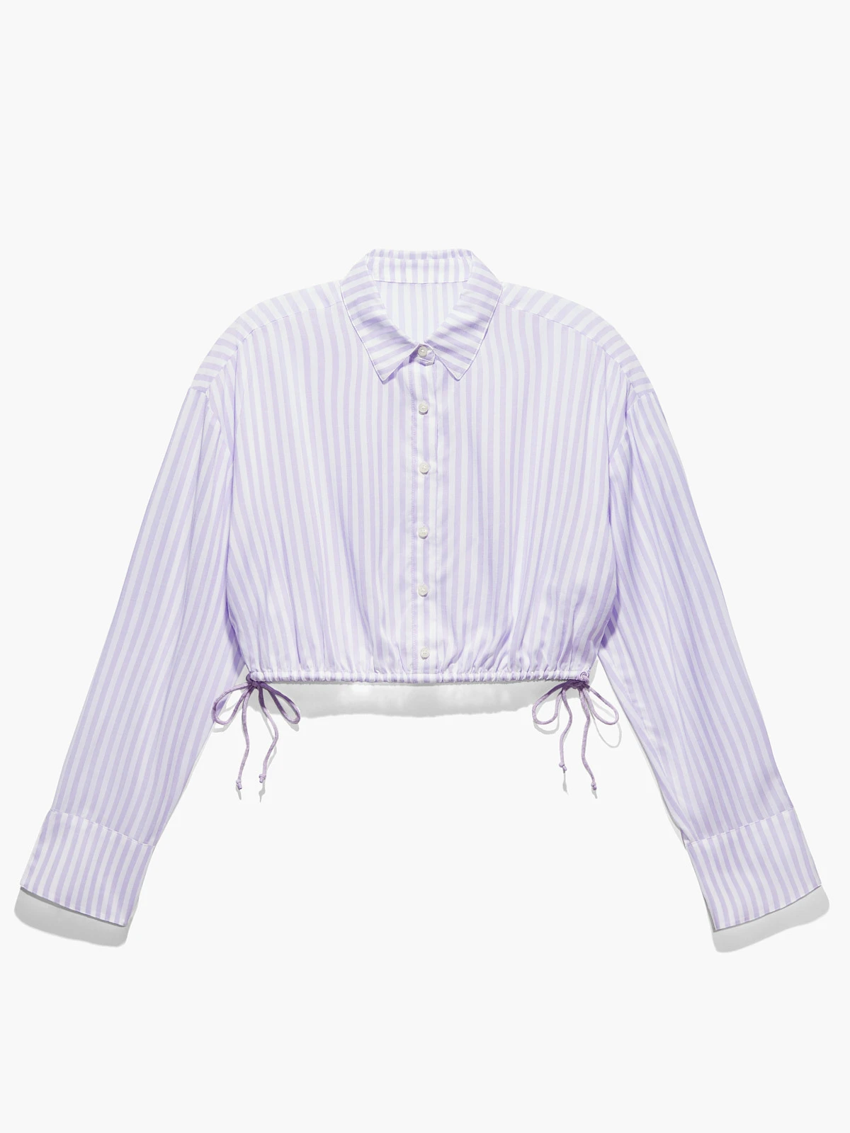 Coastal Stripe Woven Voile Sleep Crop Shirt With Drawstring