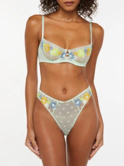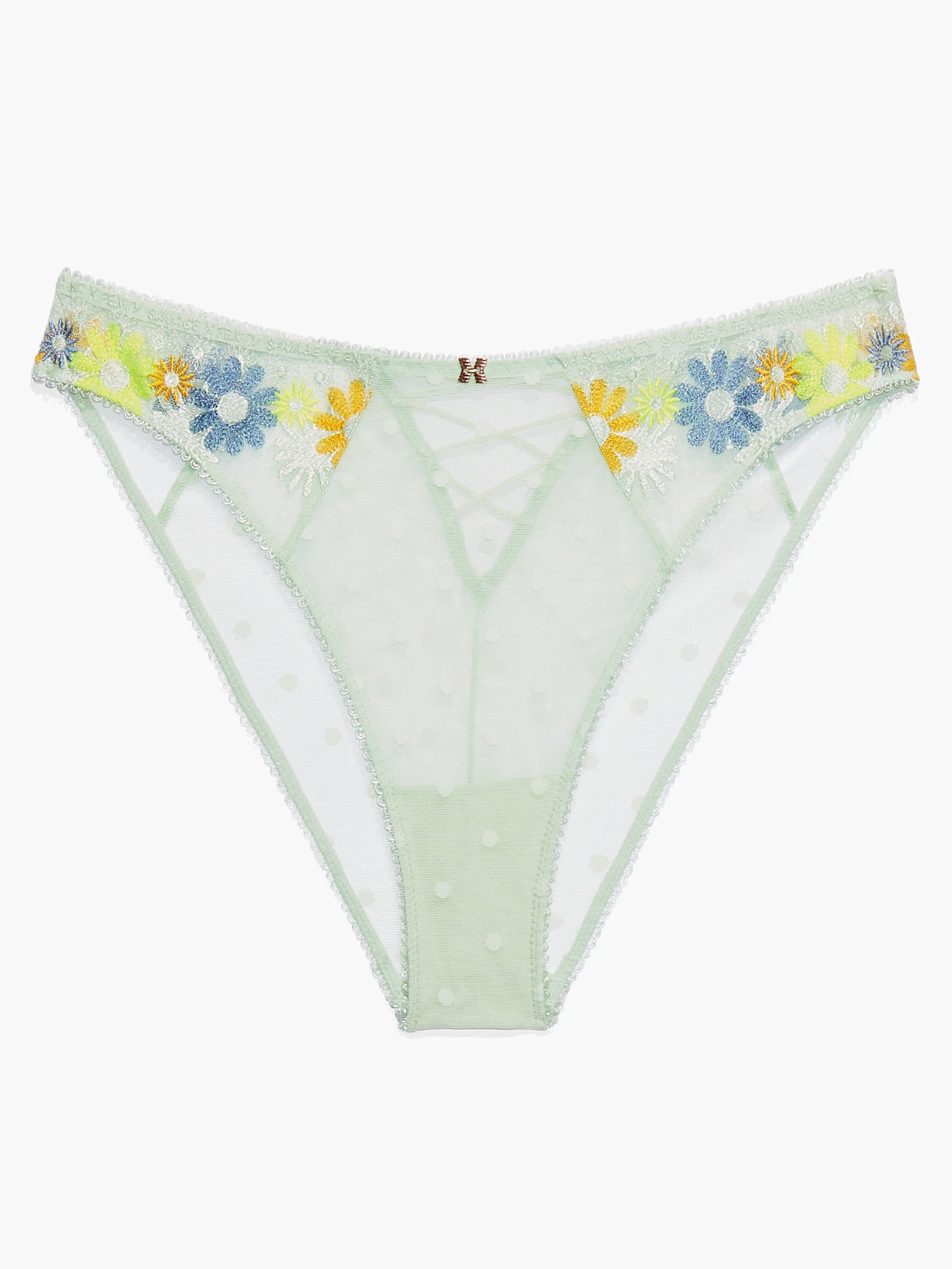 Wir lieben Retro-Vibes! Unser Free Spirit Floral High Leg Bikini ist aus transparentem Mesh-Stoff und hat eine farbenfrohe Stickerei im Retro-Look und das Savage X Logo auf der Vorderseite.