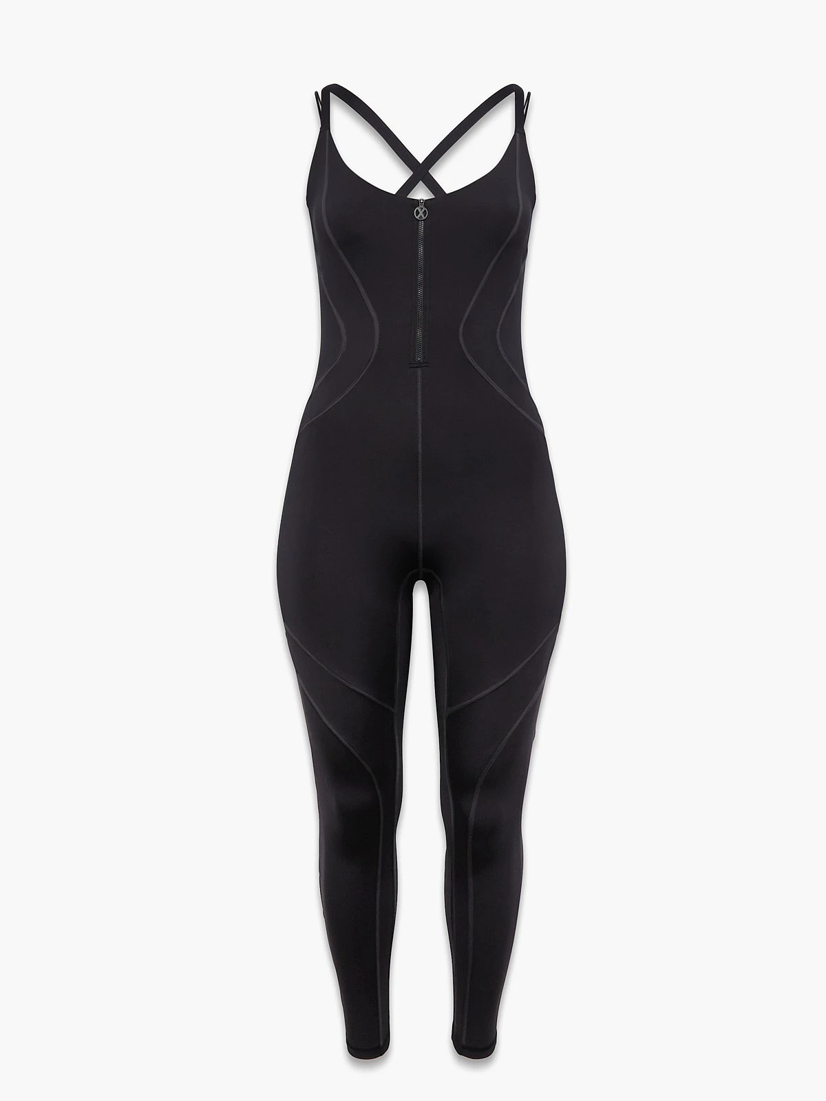 Für alle Abenteuerlustigen! Entdecke unseren Night Rider Jumpsuit mit integriertem BH, einem Reißverschluss vorne, verstellbaren, überkreuzten Trägern am Rücken und einem Schlüssellochausschnitt hinten.