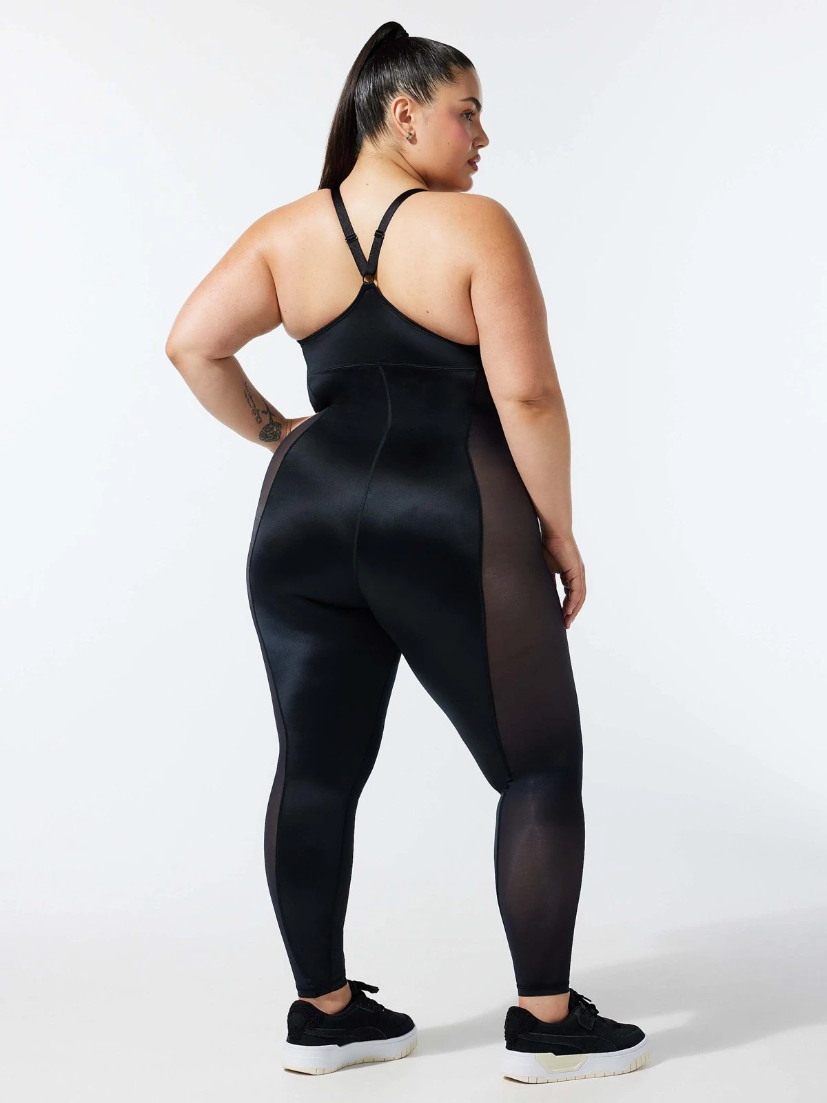 Mit unserem On The Mark Jumpsuit bist du sofort startklar. Dieser bodenlange Jumpsuit ist von Vintage-BHs inspiriert und zeichnet sich durch kompressionsarmen Stoff und verstellbare Satinträger aus.