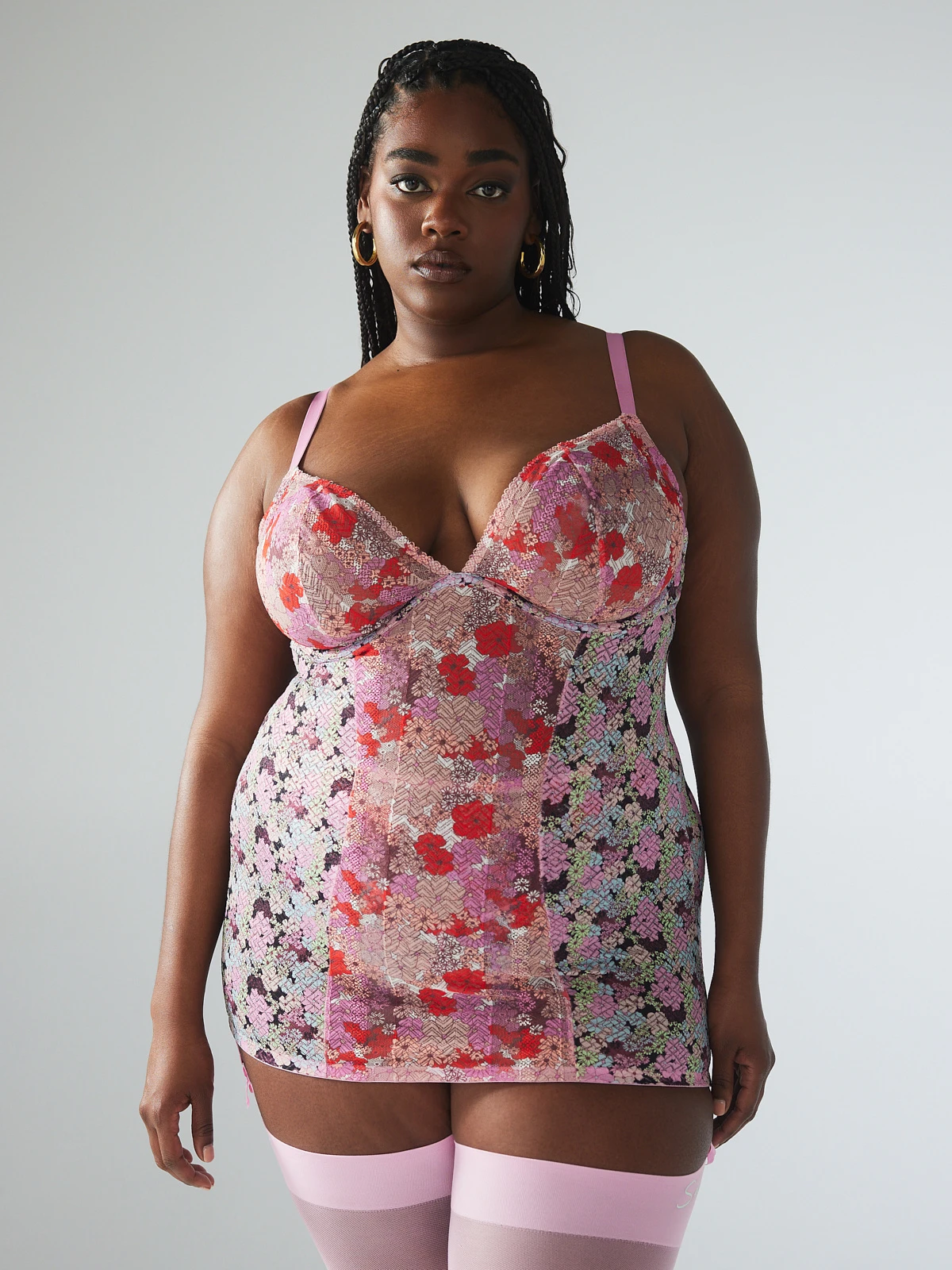 Bis an die Spitze! Unser Penthouse Sweet Lace Slip ist aus personalisierter floraler Spitze, hat verstellbare Träger und Strumpfhalter.