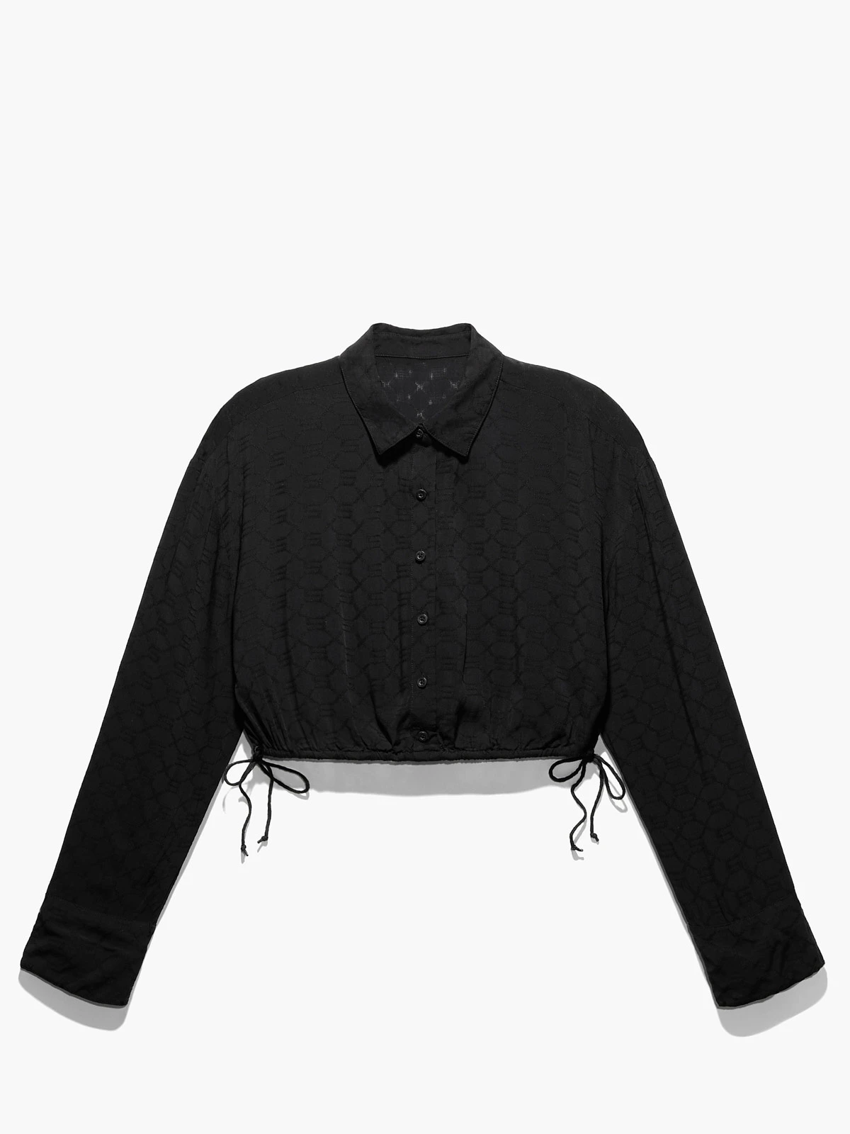 Woven Voile Monogram Sleep Crop Shirt With Drawstring